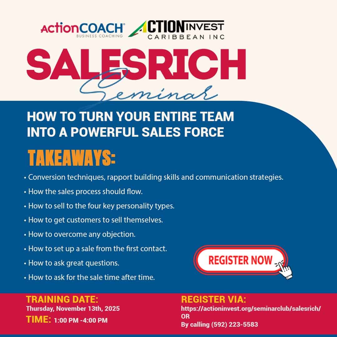 Join us for the SalesRICH Training workshop, a focused one-day program designed to sharpen your team’s selling skills. The session covers proven techniques including rapport building, conversion strategies, objection handling, and effective questioning. Whether you’re leading a sales team or directly involved in revenue generation, this training equips you to move from “just selling” to high-performing sales results.